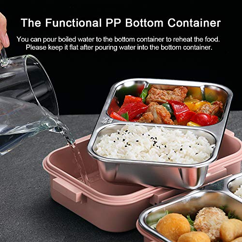 ?? Multifunctioneel? De buitenlaag is voedselveilige plastic container, je kunt er heet water in gieten om het voedsel op te warmen in het interieur roestvrijstalen lunchcontainer