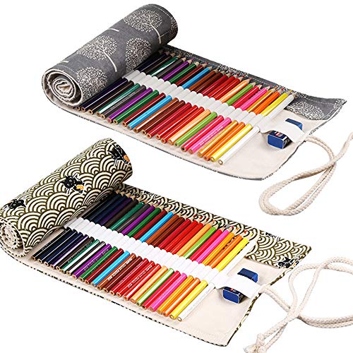 behone 2 stks Canvas Potlood Wrap Case (36 posities), warp Pencil case Groot, Canvas Potlood Wrap Kleurpotloden Houders…