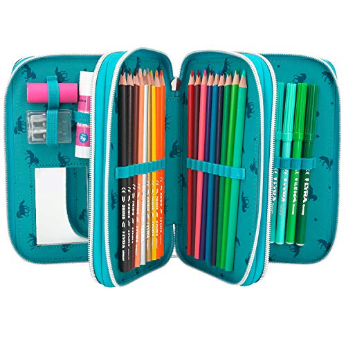 Etui voor meisjes met 3 vakken met ritssluiting