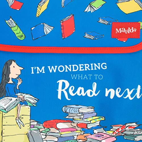 Matilde Kinderboekentas. Kleine onheilspellers zullen houden van deze schattige Matilda boekentas geïnspireerd op de Roald Dahl klassieker uit 1988. Deze tas, die de originele kaft weergeeft, bevat een groot hoofdvak en een handig hengsel; perfect om alle boeken van jouw kleine boekenwurm in op te slaan! Compleet met naamplaatje in de tas en een sterk hengsel zal deze tas elk avontuur doorstaan!