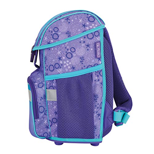 De Herlitz Loop onderscheidt zich door zijn geringe gewicht van minder dan 1 kg. De vormvaste behuizing en de klassieke verdeling van de vakken maken het voor kinderen eenvoudig een goed overzicht over de schoolmaterialen te behouden en zich snel te organiseren. Met betrekking tot de ergonomische kenmerken overtuigt dit bijzonder lichte model door zijn ergonomisch gevormde rugkussen, dat met zijn ademende materiaal een optimaal draagcomfort biedt. Daarnaast zorgen verstelbare schouderbanden en een in hoogte verstelbare borstband voor een hoge flexibiliteit en grote aanpassingsmogelijkheden. Veiligheid in het donker wordt gegarandeerd door de reflecterende materialen op voor- en zijgebied, schouderbanden en door een extra reflector in het klikslot.