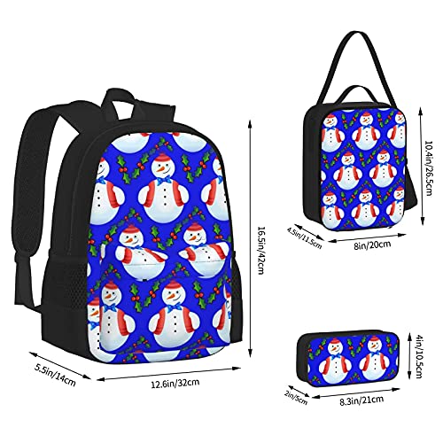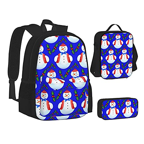 Specification: Kerst Sneeuwpop Blauw Beste Gift Voor Studenten 3 In 1 Set Waterbestendig Rugzakken/Grote Capaciteit Potlood Cases…