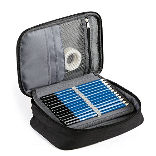 Grote capaciteit: 72 sleuven voor potloden, veel kleine vakken voor vlakgom, band, mini-notitieboek enz.