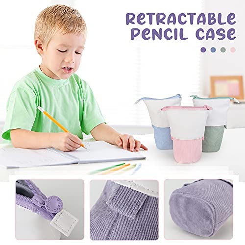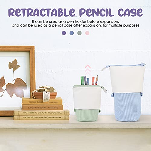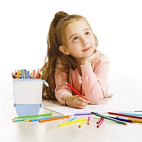 LQKYWNA Stand Up Pencil Case, Telescopische Eenkleurige Pen Pouch Case Cosmetische Briefwarentas met ritssluiting voor…
