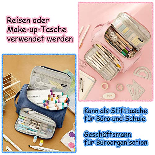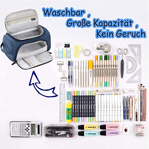 ✂ Met handgrepen – draagbaar en draagbaar. Praktisch gebruik op rijk, skzze. Het praktische ontwerp met drie vakken voor deze pennenzak voor het scheiden en organiseren van je verschillende voorwerpen. Het hoofdvak biedt voldoende ruimte en de twee andere vakken zijn voorzien van pennenlussen, elastische netvakken en binnenvakken voor kleine voorwerpen zoals gum, paperclips, scharen, enz.