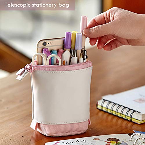 Specification: S SMAUTOP Telescopische Potlood Pouch Bag, Corduroy & PU Lederen Potlood Stand Praktische Potlood Case Potlood Houder…