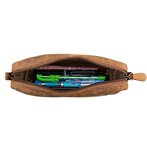 Vintage lederen pennenbakje | pennenbakje van echt rundleder | voor een perfecte organisatie van alle pennen, 15 cm linialen en andere schrijfmaterialen