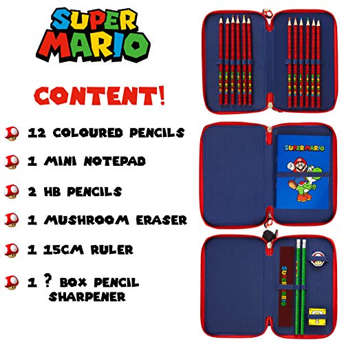 SUPER MARIO Cadeaus — Ben je op zoek naar tienerjongenscadeaus of kous vulstoffen voor je zoon, neef, kleinzoon of voor een schoolvriend? Deze coole etui jongens met kleurpotloden voor kinderen, gummen voor school, potloden voor school, liniaal, puntenslijper voor kinderen en het kawaii notitieboek is volledig gelicentieerd door het beroemde merk en is geweldige cadeaus voor jongens voor een verjaardag en elke gelegenheid