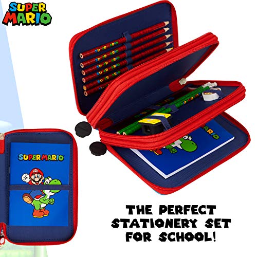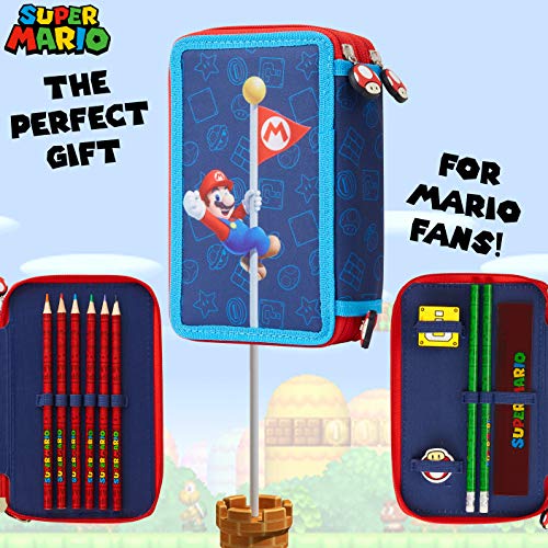 Super Mario Potlood Case, grote etui gevuld, 15+ schoolbenodigdheden briefpapier etui, potloden slijper gummen liniaal…