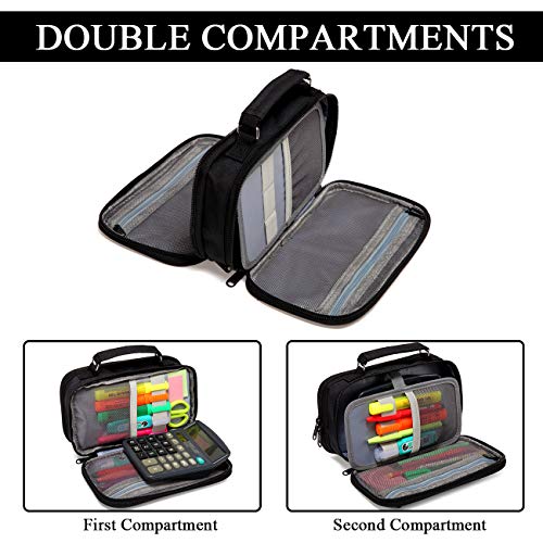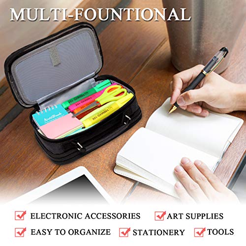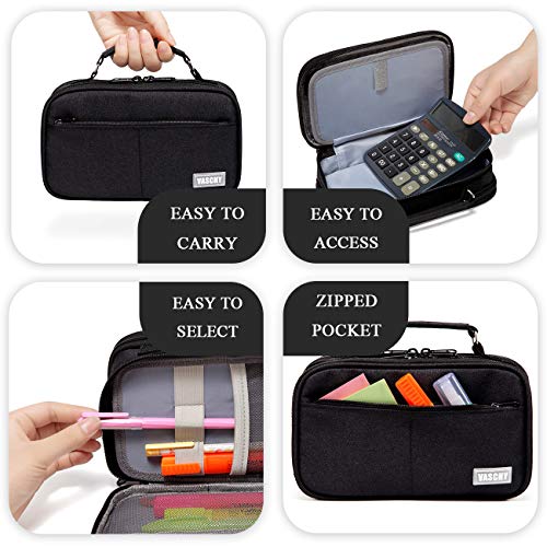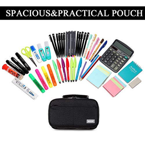 Vashy Etui met grote capaciteit, voor school, studenten, werk, kantoor en schoolmateriaal, zwart