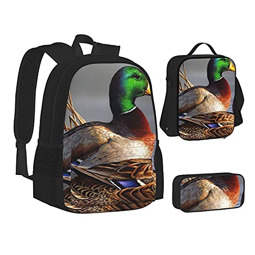 Specification: Mallard Duck Print Rugzak Voor Jongens Tieners Boekentas Reizen Dagrugzak, Lunch Bag En Potlood Case Combinatie