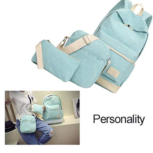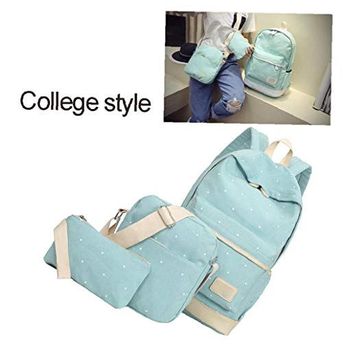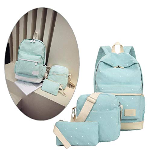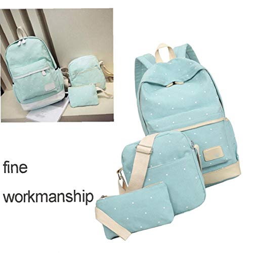 Specification: Tieners Rugzak Set Canvas Polka Dot Schooltas Set voor Meisjes Jongens 3 in 1 Back Pack Licht Groen