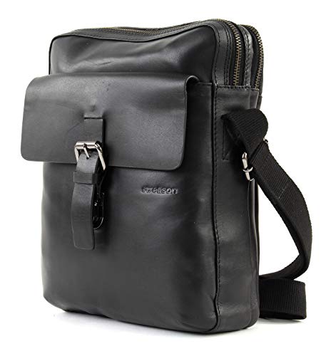 Gegevens schoudertas: Afmetingen: breedte ca. 22 cm, hoogte ca. 26 cm, diepte ca. 6 cm Afmetingen gevoerd tabletbakje: breedte ca. 20 cm, hoogte ca. 26 cm, diepte ca. 2 cm Gewicht: ca. 650 g Kleur: Black (zwart) 1 schouderriem traploos verstelbaar: ca. 96 cm – 158 cm Materiaal: 100% leder buitenkant, 100% polyester binnenkant strellson levering: strellson schoudertas met label
